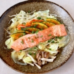 野菜たっぷりのサーモンのレンジ蒸し。お野菜を切るだけで、あとはレンジにおまかせ、手間ひまかけずにメイン料理の完成です。焼 ...