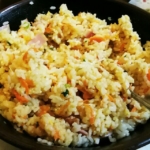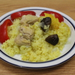 お米と一緒にターメリックを加えて炊きました。炊く直前にターメリックパウダーを加え、軽く全体をかき混ぜてから炊きます。色鮮 ...