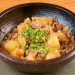 レンジで簡単じゃがいものそぼろ煮、全部入れてレンジでチンで完成です。 じゃがいもの甘みをお楽しみください。ホクホクのじゃ ...