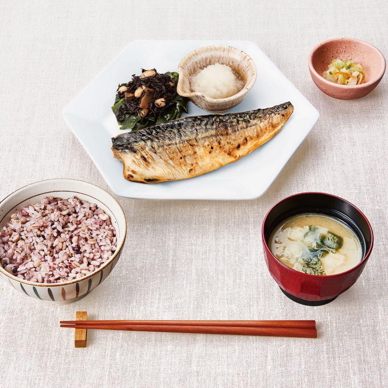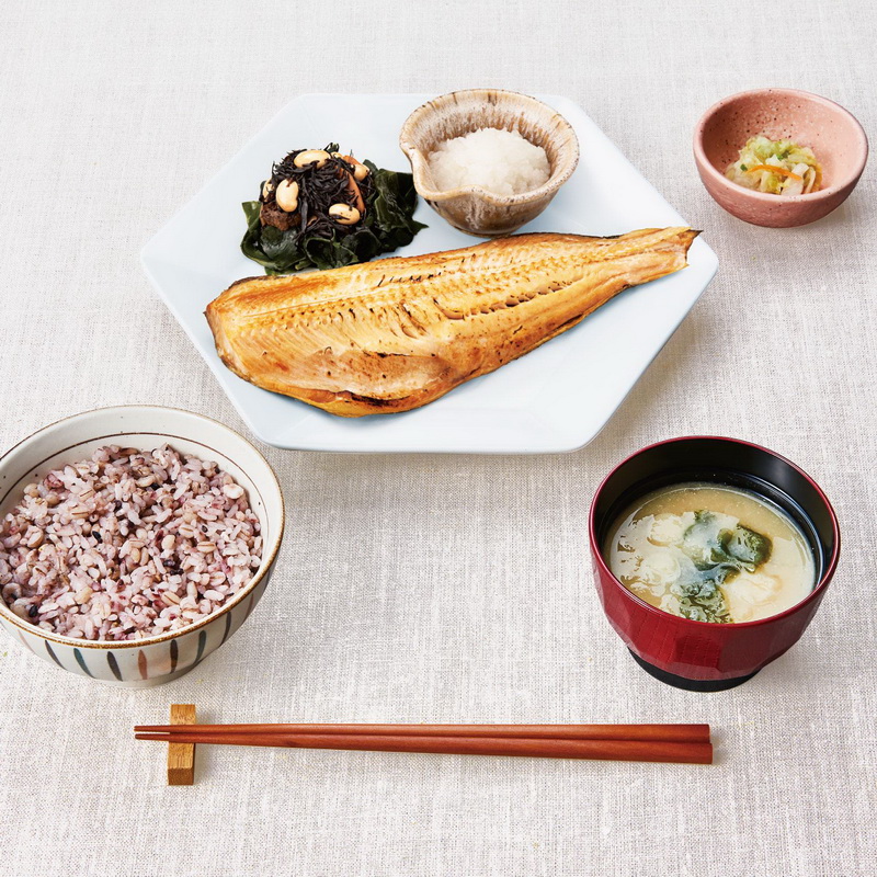定食:964円(税込:1,060円) 570kcal 塩分:4.8g 五穀ご飯、味噌汁、お新香