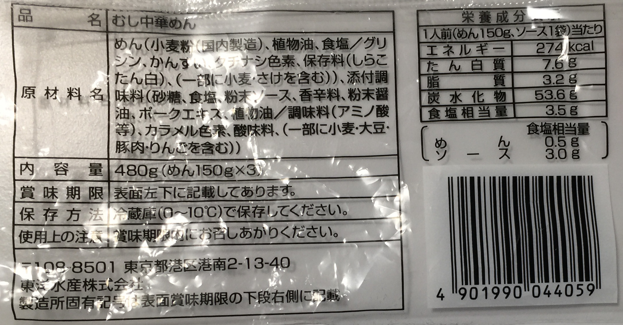 麺だけの塩分相当量は0.5gです。