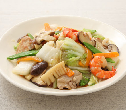 五目チャーハンと同じで八宝菜とは8種の具材があるという意味ではなく、たくさん具材が入ったいう意味です。