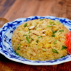 材料はごはんと卵とひき肉と野菜、カニカマ、ニラなどです。