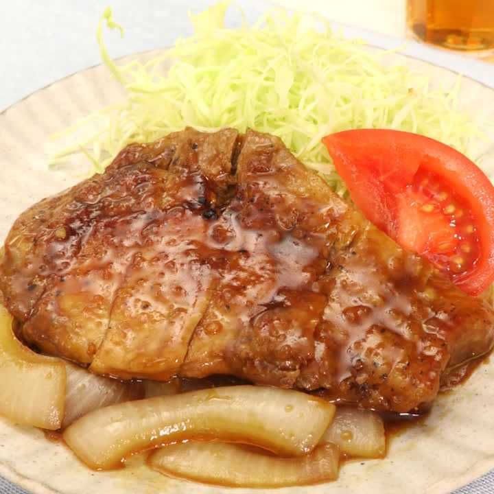ご飯のすすむ甘辛味つけで、みんな大好きな定番トンテキを作りました。