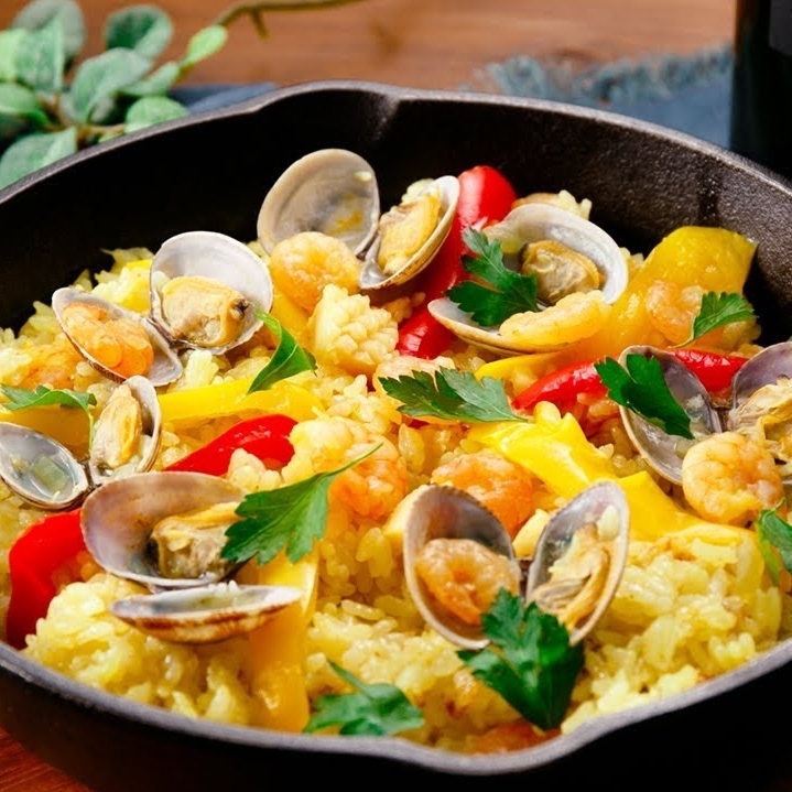本来はパエリア鍋で作りますが、炊飯器でもおいしく、しかも簡単にできます。