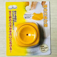 100円ショップの「卵の穴あけ器」や押ピン等を使って開けます。