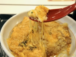 親子丼にチーズとは、味が想像しづらいかもしれませんが、クリーミーなテイストになってなかなか評判が良いようです。