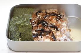 3.お弁当箱に残りの半分ごはんをのせ、おかかふりかけ海苔をのせて完成。