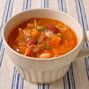 野菜をたっぷり入れてたくさん作っておけば、朝晩のスープには困りません。あたたかくてとっても身体にやさしいスープです。