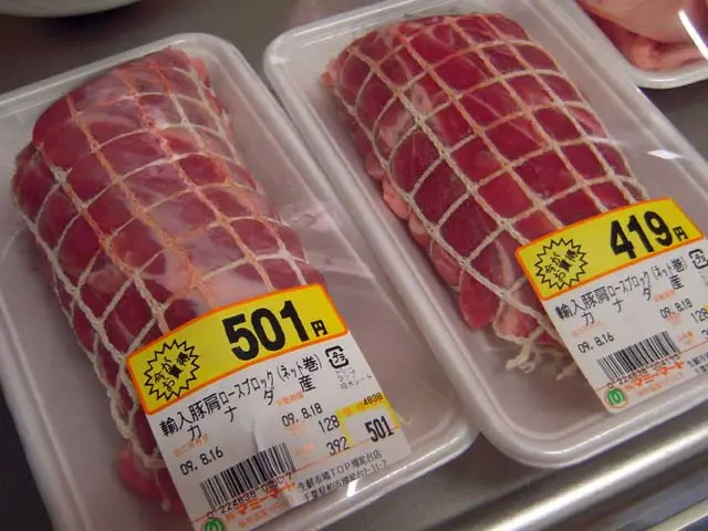 1.耐熱容器で漬けた豚ブロック肉の汁気が多ければ、軽く切ります。