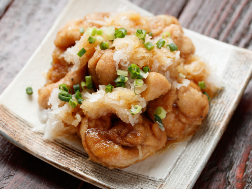 6. 器に唐揚げを盛り、大根おろしをのせます。