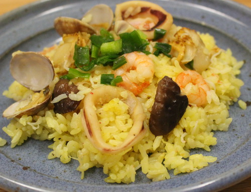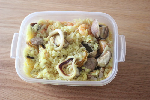 電子レンジで作る「なんちゃってパエリア」なので、どうしてもパラパラ感は少ないのですが、かなり本物に近い味は出ていました。とても満足した食べ心地になりました。