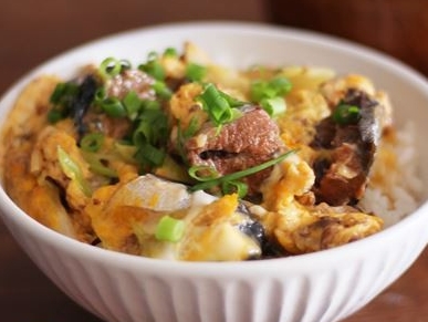 サバ缶(汁ごと)に調味料を加えて卵を乗せてレンチンして作ると、とろみダレが程よく絡んだサバ缶の卵丼の出来上がりです。野菜をレンジ加熱して、食感豊にすれば、ボリューム丼に変身します。缶詰を使うことで、下ごしらえの手間や煮込み時間が省け、時短になります。大根おろしと一緒に食べると、さっぱりとした食感と、さらなる満足感が得られます。