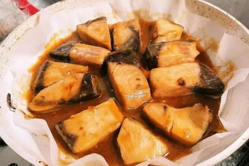 8.調味料にとろみがついて、ぶりに絡んだら完成です。