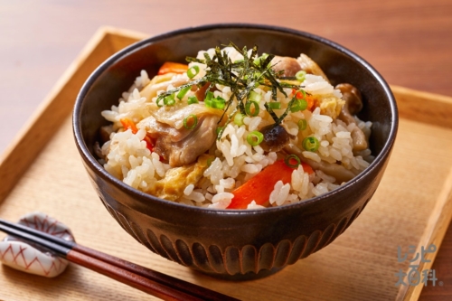 7.炊き上がったらよく混ぜ、器に盛り、小ねぎと刻みのりを散らして完成です。