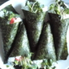 3.卵焼き用フライパンに油を敷き、サバを入れ、その上に海苔を乗せる。