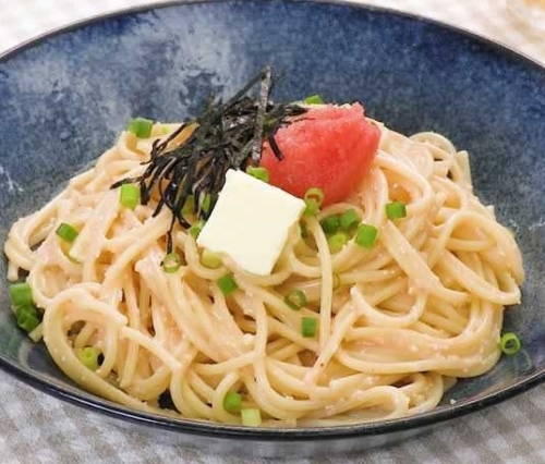 明太子スパゲティを和風テイストで作りました。生クリームを使った明太クリームパスタよりも手軽に作れて、飽きのこない味わいが人気のポイントです。作り方はレンジで作るのでとっても簡単です。鍋でお湯をわかす必要がないので、時短になり、洗い物も少なくなります。手間をかけずに作りたい、ひとりごはんにおすすめです。しらすや大葉などお好きなトッピングで、味のバリエーションをお楽しみください。