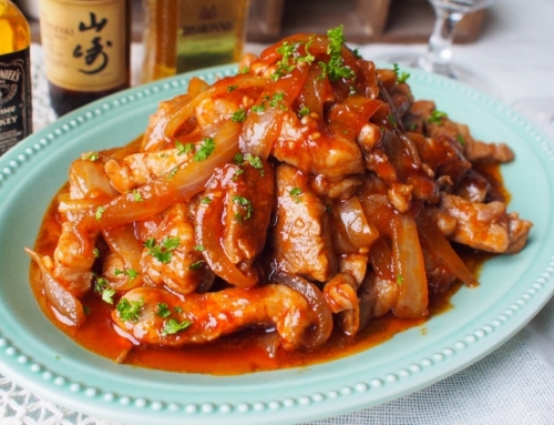 豚ロースを使ってケチャップとウスターソースで煮絡めます。手軽にできて、ご飯がすすむおいしさです。今回のポークチャップは豚ロースなので、小さな子供たちも食べやすくて大好きなケチャップの味付けです。ポイントはケチャップの酸味を飛ばすことと、最後のほんの少しバターを加えることです。これで、一気に洋食屋さんみたいな本格的な味に大変身します。