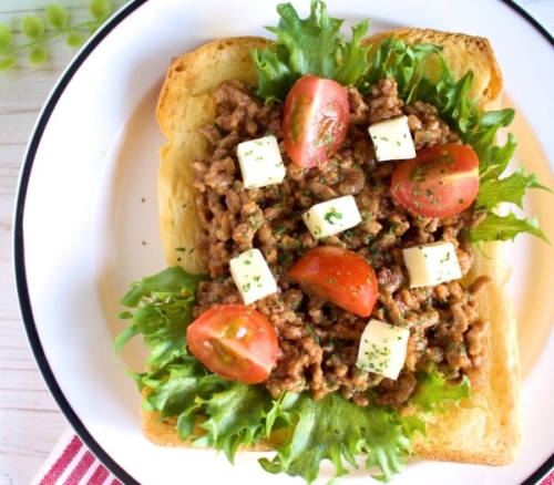 家庭でも作りやすいように、タコライスをトースト版にアレンジしました。上に乗せるひき肉ダネは、ケチャップとウースターソースを混ぜて、レンジで3分チンするだけで完成です。トーストを焼いてる間に作れちゃいます。めっちゃ簡単でボリューム満点、エキゾチックな味が楽しめます。もちろんご飯に乗せても美味しいです、お弁当にもぴったり!ぜひ、お試しください。